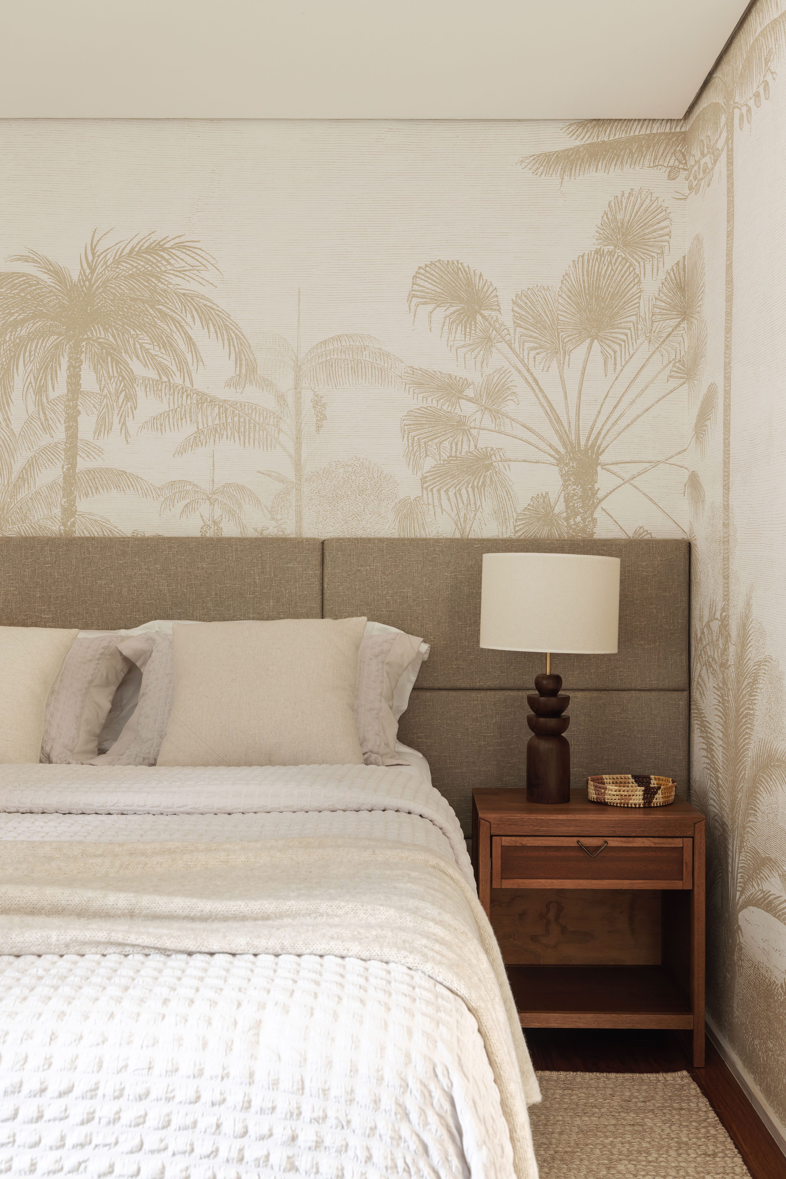 The main modifications were concentrated on painting, decoration, and lighting. Walls were neutralized in shades of white to expand the feeling of space and luminosity. The palette is of neutral colors, with occasional touches of vibrant tones, and the use of natural materials such as wood, straw, and rattan reinforce the contemporary beach concept of the home.