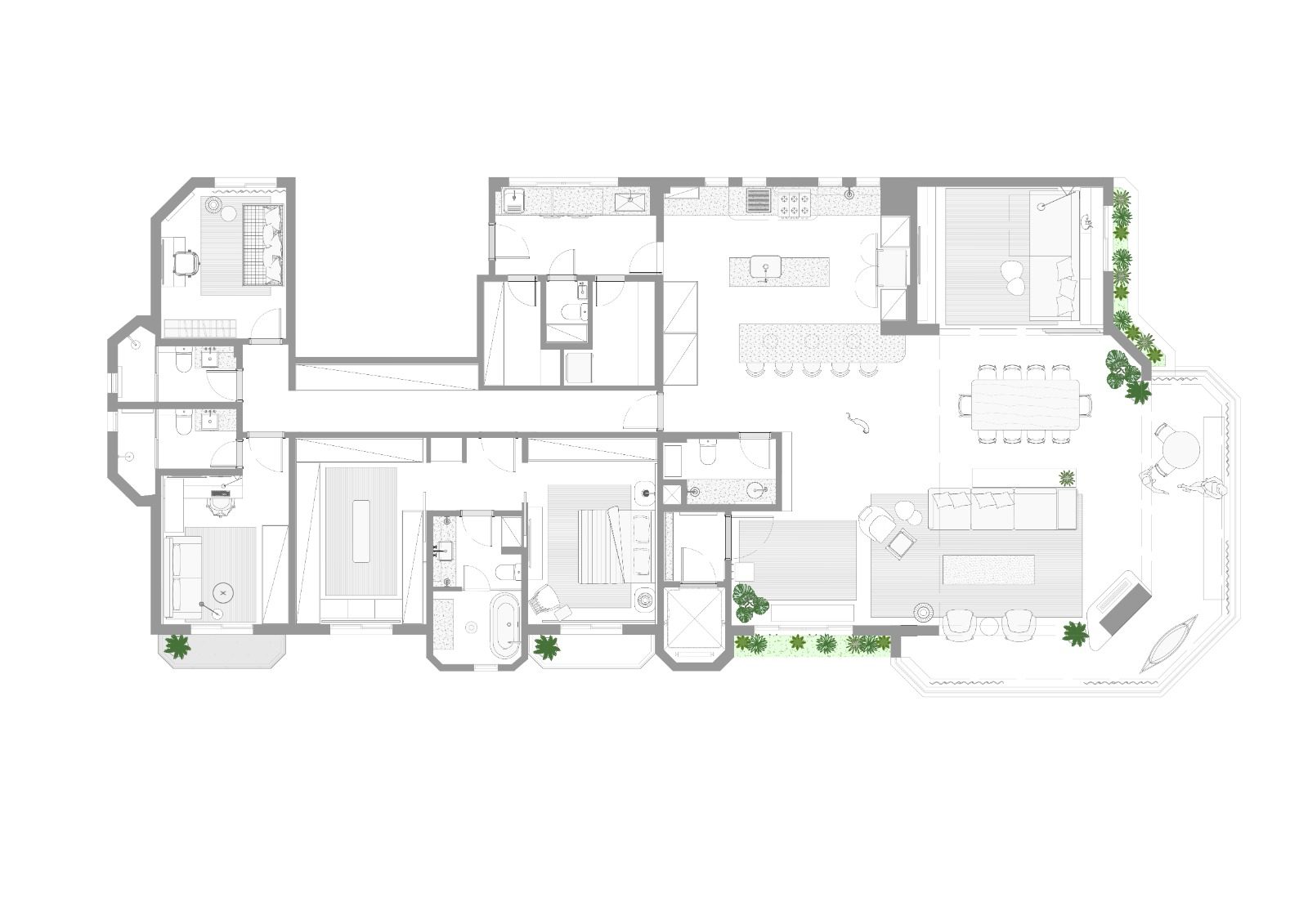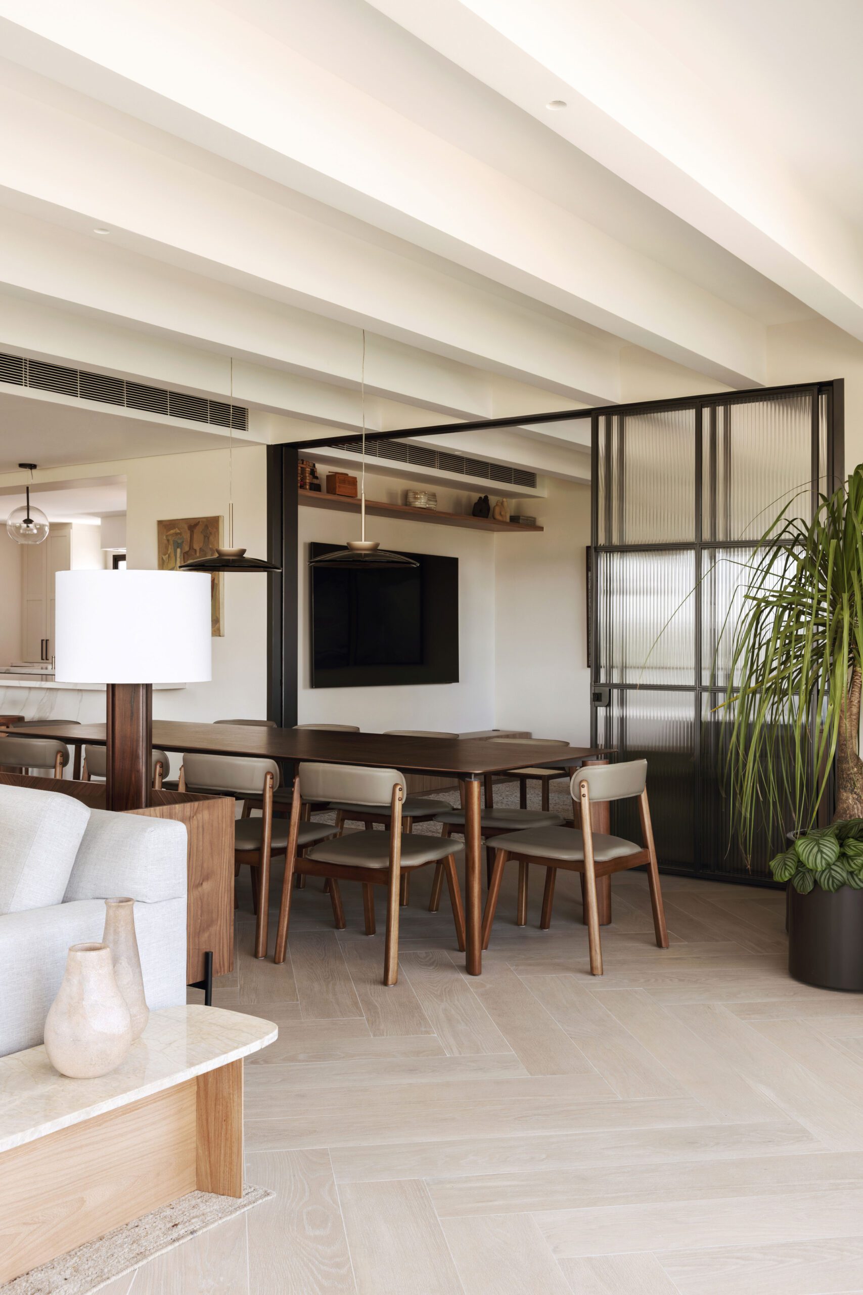 Um apartamento de 280 m², localizado em um edifício da década de 1980, passou por uma reforma completa que reorganizou sua planta para atender dinâmicas contemporâneas. O projeto foi desenvolvido para um casal que valoriza momentos de convívio em casa, com ambientes capazes de acomodar encontros com amigos e, ao mesmo tempo, proporcionar conforto no cotidiano.