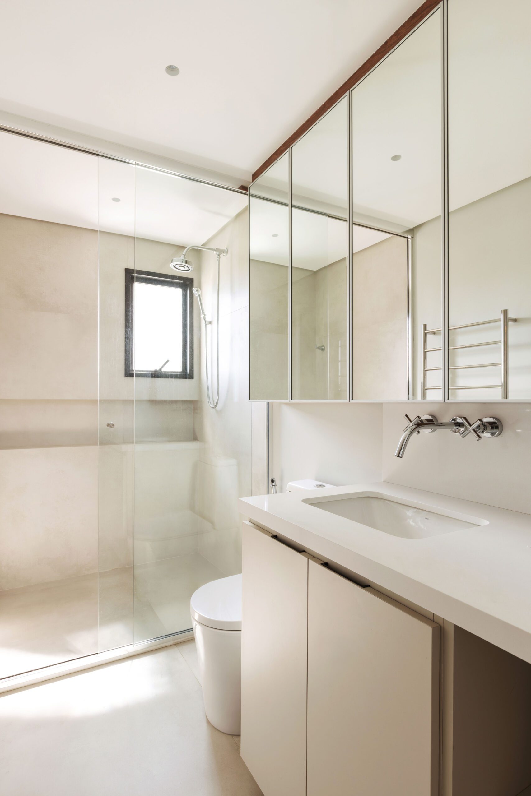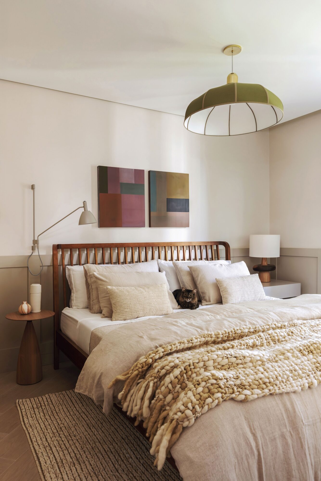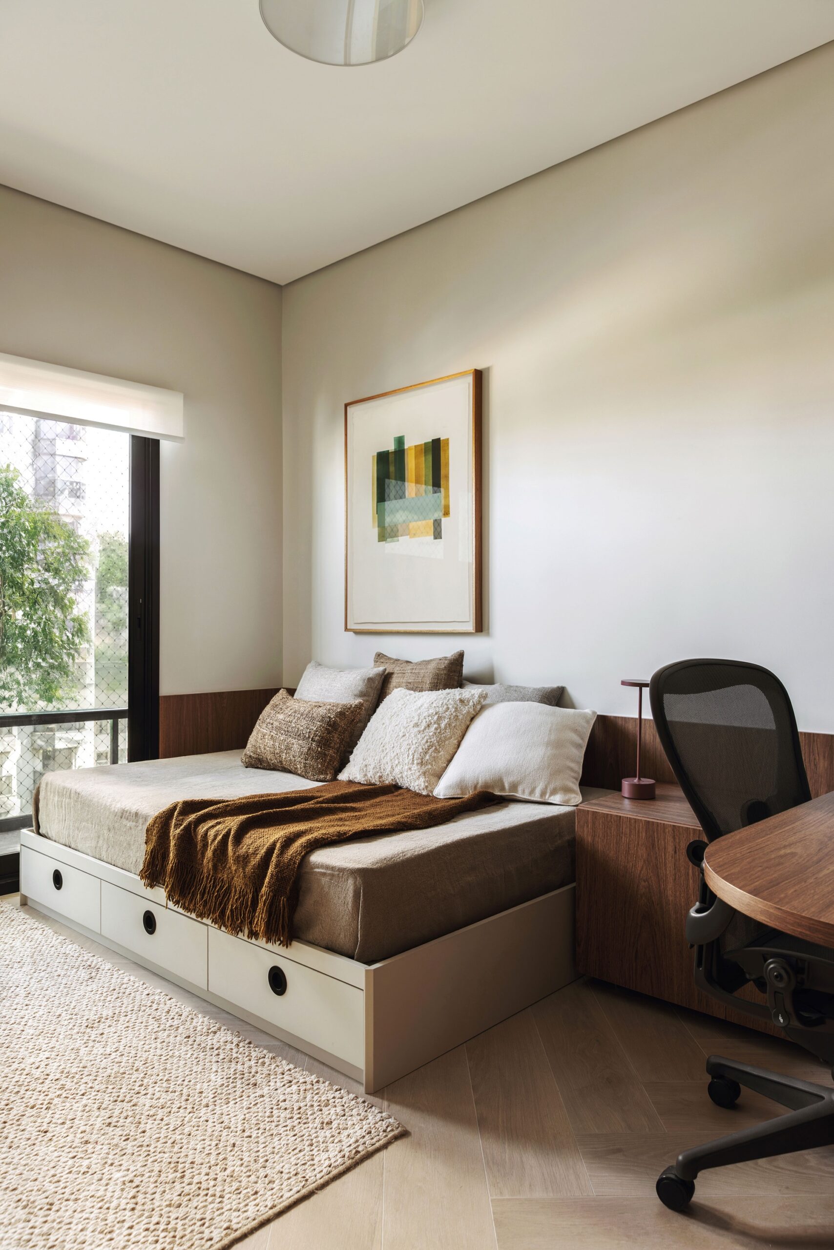 Nos ambientes íntimos, os espaços foram planejados para favorecer uma atmosfera acolhedora, com soluções de iluminação e materiais que reforçam a sensação de permanência e tranquilidade.